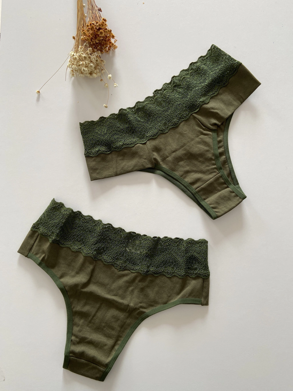 A calcinha Mari é confeccionada em algodão e renda e modelagem do bumbum tanga;